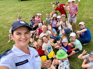 Tematem wiodącym spotkania z uczestnikami półkolonii letniej zorganizowanej przez Spółdzielczy Klub PIAST w Jaworze było bezpieczeństwo podczas trwających wakacji. Mł. asp. Paulina Domaradzka omówiła zasady bezpiecznego wypoczynku nad wodą i w górach, przypominając szczególnie o zasadach bezpiecznych kąpieli, zabaw nad wodą czy chodzeniu po górskich szlakach. Ważnym elementem pogadanki było przypomnienie podstawowych zasad bezpiecznego korzystania z różnego rodzaju kąpielisk i unikania tych, które są niestrzeżone. Policjantka starał się przekazać dzieciom informację o tym, jak reagować w sytuacjach zagrożenia oraz do kogo zwrócić się o pomoc.