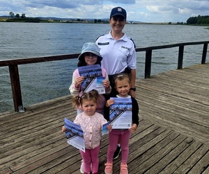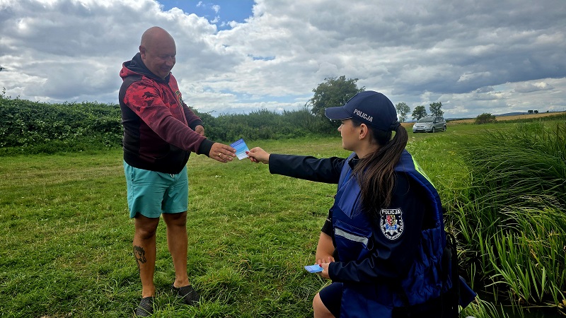 Policjantki rozmawiały z napotkanymi osobami – zarówno z wędkarzami, jak i plażowiczami – o szeroko pojętym bezpieczeństwie, przypominając m.in. o zasadach bezpiecznego korzystania z kąpielisk i sprzętu pływackiego. W ramach działań przekazywały ulotki informacyjne z poradami, jak uniknąć zagrożeń podczas letniego wypoczynku nad wodą. Funkcjonariuszki zachęcały także dzieci do wzięcia udziału w konkursie „ARTYSTYCZNY przeWODNIK”, którego organizatorem jest Komenda Główna Policji.