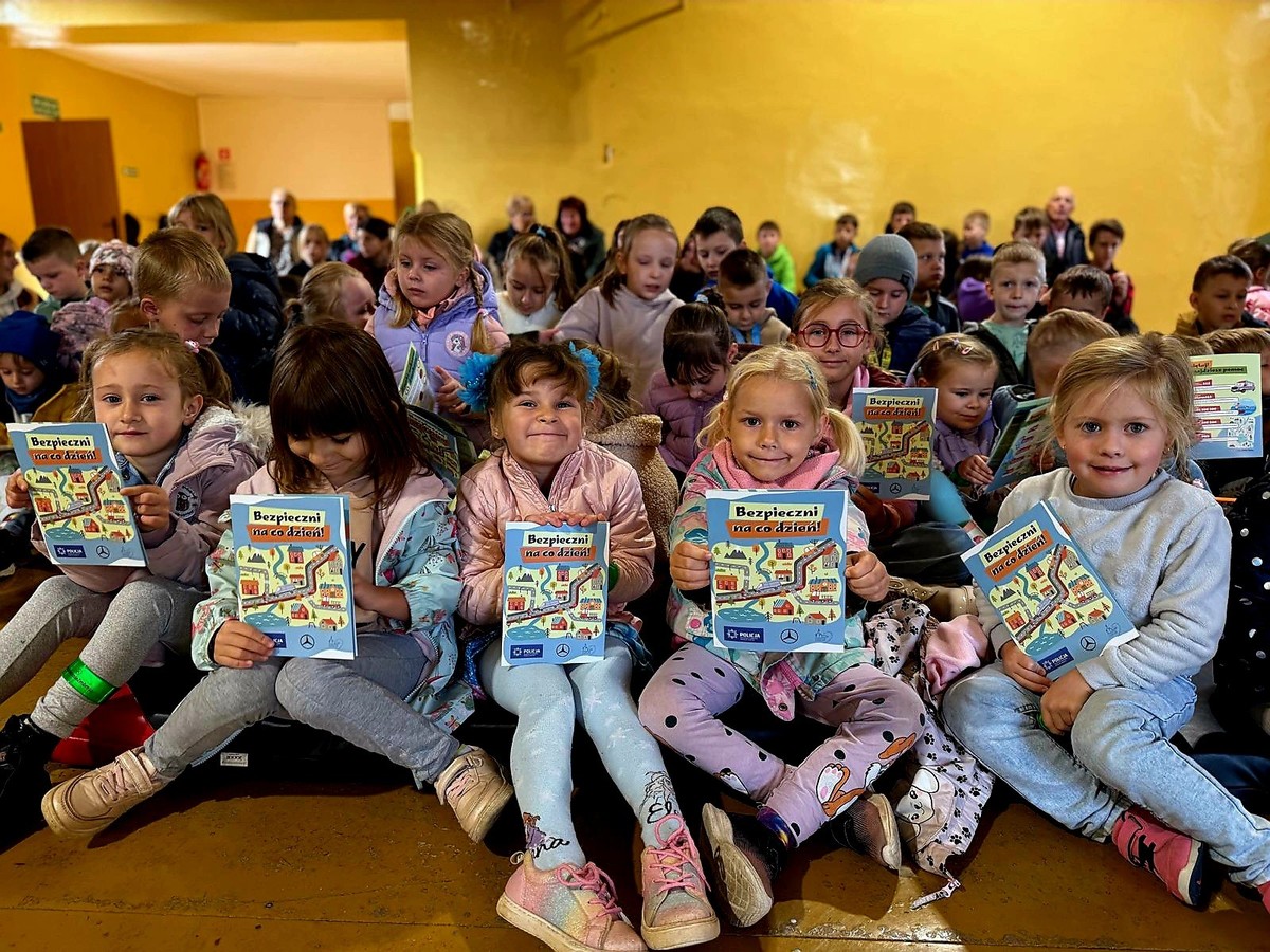 Firma Mercedes ufundowała oświetlenie do sześciu szkolnych rowerów, a od policjantów uczniowie otrzymali książeczki edukacyjne „Bezpieczni na co dzień!” oraz elementy odblaskowe poprawiające widoczność.