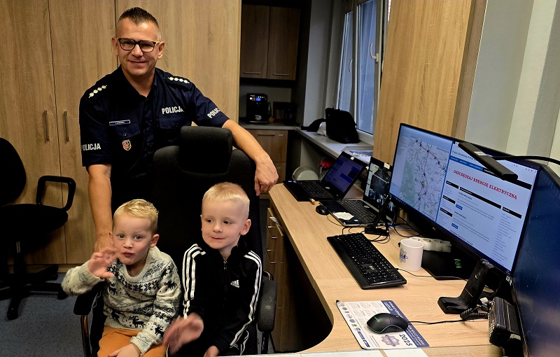 Nie zabrakło też wizyty na stanowisku dyżurnego, gdzie mali goście przez radiostację pozdrowili policjantów pełniących służbę w terenie.