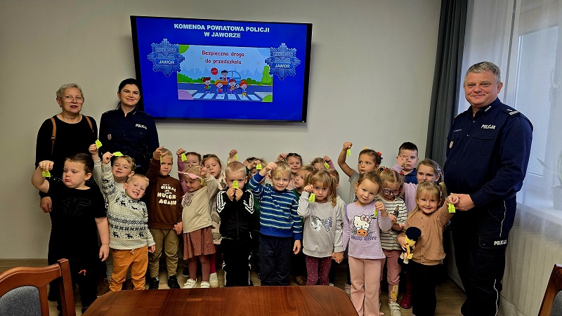 Wczoraj Komendę Powiatową Policji w Jaworze odwiedziła grupa „Mądrusiów” z Publicznego Przedszkola „Akademia Krasnoludków” w Jaworze. Wizyta była pełna emocji, ciekawostek i dobrej zabawy.
