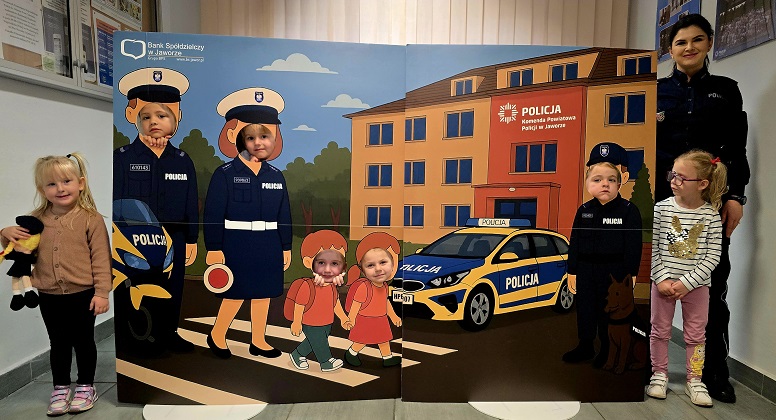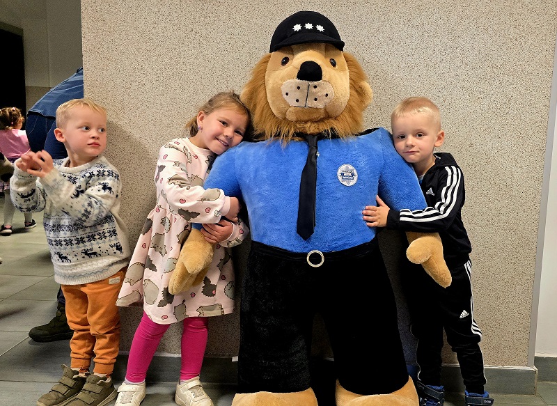 Spotkanie zakończyło się wspólnym zdjęciem z maskotką jaworskiej Policji – misiem-policjantem Lwem, na specjalnej macie edukacyjnej, gdzie dzieci mogły „wejść w rolę” policjanta.