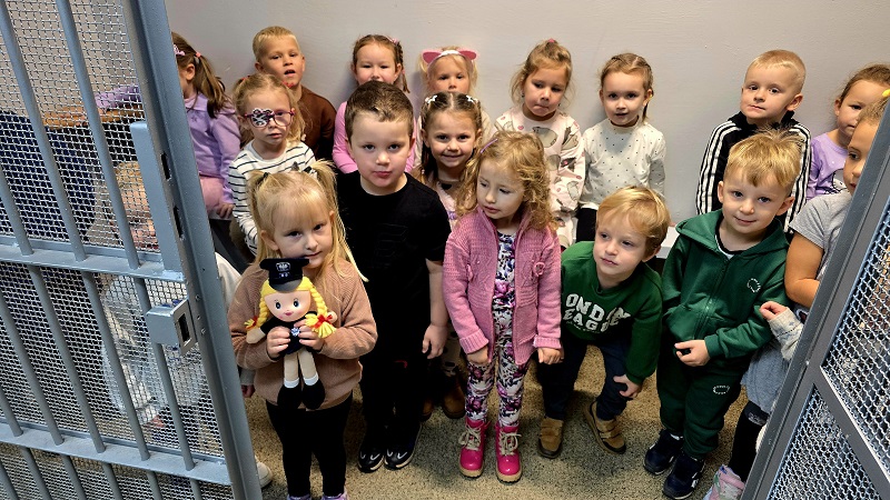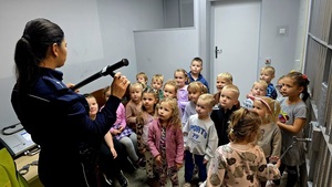Przedszkolaki miały okazję zobaczyć, jak wygląda codzienna służba policjantów. Odwiedziły między innymi pomieszczenie dla osób zatrzymanych, potocznie zwane „kratą”, oraz zapoznały się ze sprzętem, jakim funkcjonariusze posługują się na co dzień.
