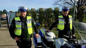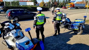 Funkcjonariusze ruchu drogowego pilnują porządku i pomagają kierowcom bezpiecznie dotrzeć na miejsce.