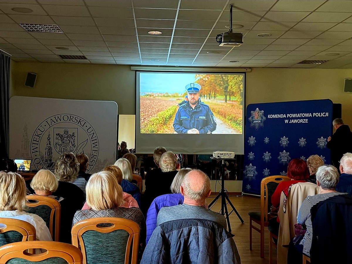 Wczoraj policjanci z jaworskiej komendy mieli przyjemność spotkać się ze Studentami Jaworskiego Uniwersytetu Trzeciego Wieku. Wizyta mundurowych odbyła się w ramach edukacyjnego spotkania poświęconego bezpieczeństwu w ruchu drogowym. Prelekcję poprowadzili funkcjonariusze Komendy Powiatowej Policji w Jaworze: