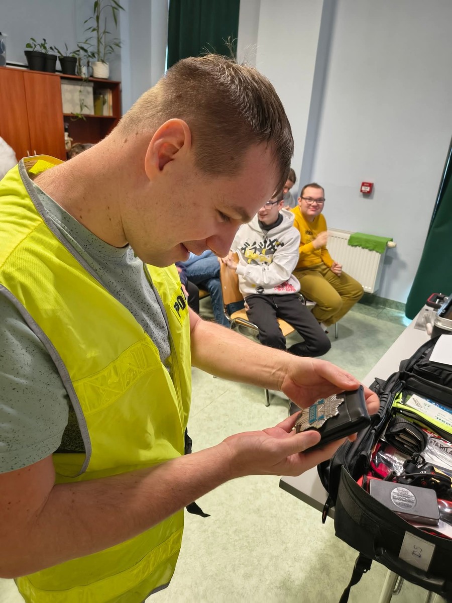 Technik kryminalistyki z jaworskiej komendy przeprowadził wyjątkowe zajęcia w WTZ