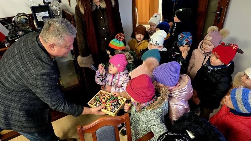 Policjantom i pracownikom jaworskiej komendy przedszkolaki złożyły najserdeczniejsze życzenia, wręczając wykonaną samodzielnie przepiękną kartkę świąteczną, w której czytamy:" Z okazji Świat Bożego Nardzoenia pragniemy prezkazać Państwu moc najcieplejszychżyczeń: takich, które rozświetlają codzienność jak pierwsza gwioazdka na zimowym niebie. Niech ten wyjątkowy czas przyniesie spokój, dobre myśli i chwile, które zostają w pamięci na długo, jak dziecięcy śmiech niosący się po korytarzach przedszkolnych. Życzymy Państwu, aby nadchodzący rok był pełen inspirujących spotkań, odważnych pomysłów i współpracy, która dodaje skrzydeł. Niech każdy dzień przynosi odrobinę magii - takiej, która sprawia, że to, co zwyczajne, staje się piekniejsze. Dziekujemy za zaufanie, otwartość i życzliwość, z jaką współtworzą Państwo nasz mały, przedszkolny świat. Niech Święta będą pełne ciepła, a Nowy Rok pełene dobrych historii. Z serdecznymi pozdrowieniami Dyrektor oraz pracownicy Przedszkola Publicznego nr 2 „Akademia Krasnoludków” w Jaworze.”