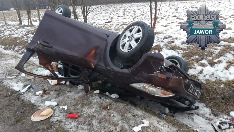 Dziś, około godziny 6:50, na drodze relacji Lipa – Mysłów doszło do groźnie wyglądającego zdarzenia drogowego. Jak wynika ze wstępnych ustaleń policjantów z bolkowskiego komisariatu, 56-letni mieszkaniec powiatu jeleniogórskiego, kierujący pojazdem marki Ford, w wyniku oblodzenia jezdni stracił panowanie nad pojazdem, zjechał z drogi i dachował w przydrożnym rowie. Mężczyzna podróżował sam. Z obrażeniami ciała został przetransportowany do szpitala w Jeleniej Górze. Badanie wykazało, że kierujący był trzeźwy.