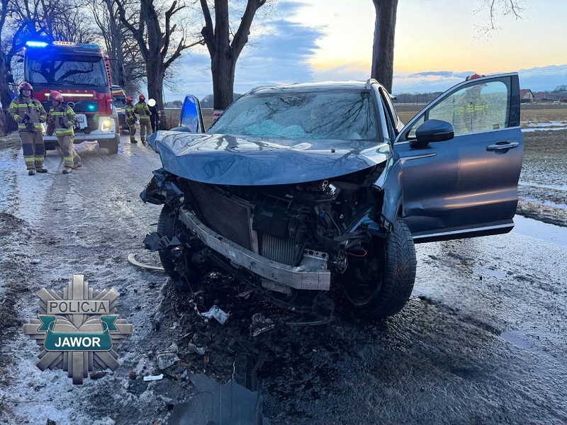 Dziś rano w Myślinowie doszło do zdarzenia drogowego z udziałem samochodu osobowego. 34-letni mieszkaniec powiatu jaworskiego, kierujący pojazdem marki Kia nie dostosował prędkości do panujących warunków drogowych. Jezdnia była śliska i oblodzona. W wyniku utraty panowania nad pojazdem samochód zjechał z drogi i uderzył w drzewo. Policja apeluje o ostrożność! Marznący deszcz i niskie temperatury powodują gołoledź, która znacząco wydłuża drogę hamowania i zwiększa ryzyko utraty panowania nad pojazdem.