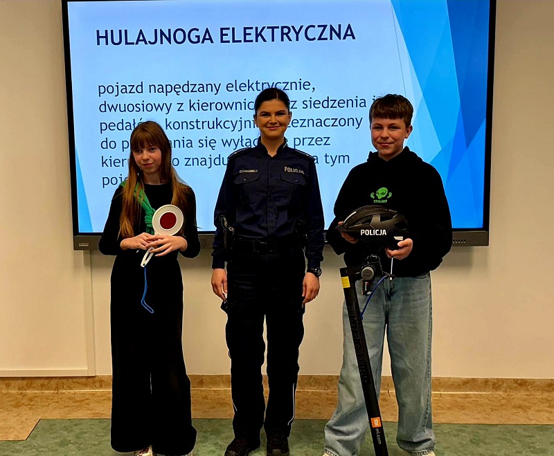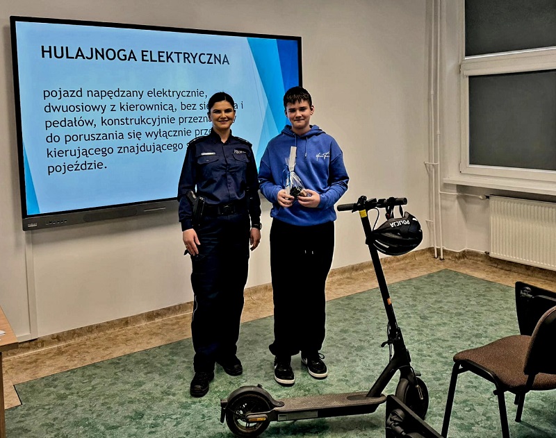 Podczas zajęć omówiono m.in. podstawowe zasady poruszania się hulajnogami elektrycznymi, obowiązki użytkowników, a także najczęstsze zagrożenia wynikające z nieprzestrzegania przepisów. Nie zabrakło również praktycznych wskazówek, które mogą pomóc uniknąć niebezpiecznych sytuacji.
