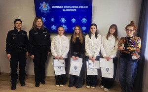 Dziś, zwycięzcy wraz ze swoimi wychowawcami odwiedzili Komendę Powiatową Policji w Jaworze, gdzie Komendant Powiatowy Policji mł. insp. Justyna Kowalczyk wręczyła im dyplomy oraz nagrody za zajęcie I, II i III miejsca.