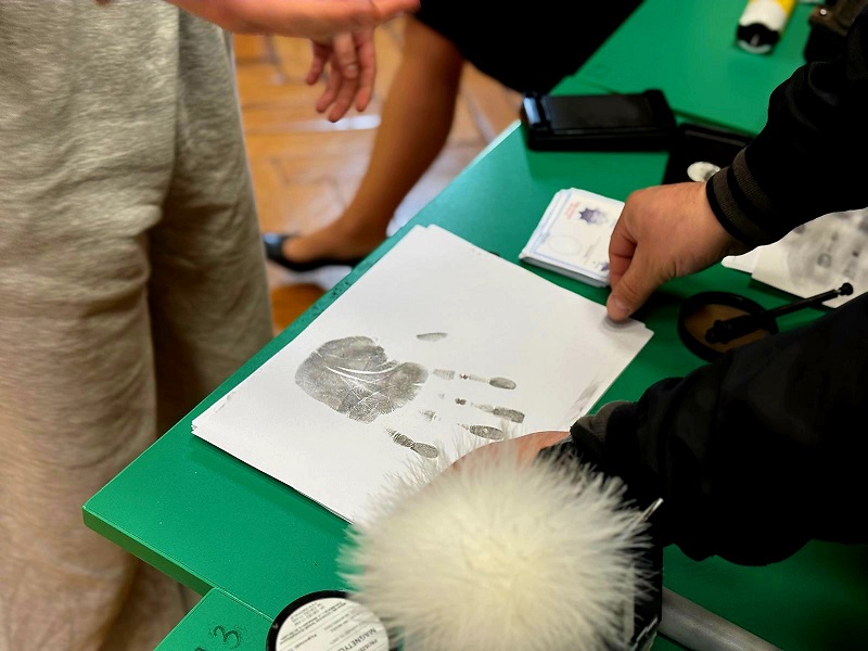 W spotkaniu uczestniczył również technik kryminalistyki, który zaprezentował specjalistyczny sprzęt wykorzystywany w swojej pracy oraz opowiedział o zabezpieczaniu śladów na miejscu zdarzenia. Maturzyści mieli okazję spróbować swoich sił w ujawnianiu i odbijaniu linii papilarnych, co wzbudziło duże zainteresowanie wśród uczniów.