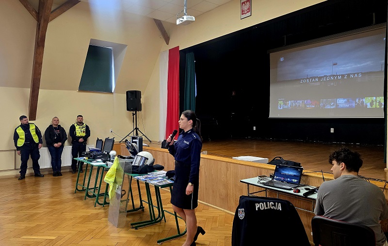 Podczas spotkania funkcjonariusze opowiedzieli o tym, jak wygląda proces rekrutacji do Policji, jakie wymagania musi spełnić kandydat oraz jak przebiega szkolenie podstawowe w Szkole Policji. Uczniowie mogli obejrzeć film prezentujący przebieg kursu podstawowego, a także dowiedzieć się, jak wygląda codzienna służba policjantów w poszczególnych pionach oraz jakie są możliwości rozwoju zawodowego w formacji.