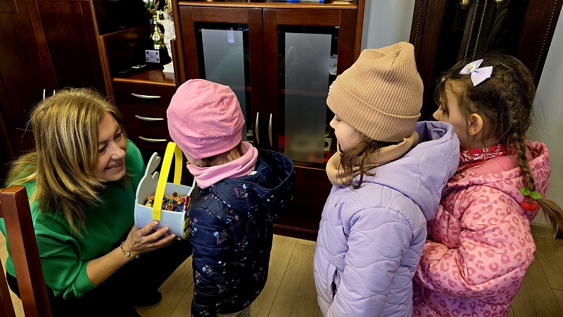 Pani Komendant wręczyła Mądrusiom słodką niespodziankę życząc najmłodszym oraz ich rodzinom zdrowych, wesołych i BEZPIECZNYCH świąt.