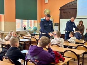 Policjantka z Komendy Powiatowej Policji w Jaworze, zajmująca się profilaktyką młodzieży oraz dwaj funkcjonariusze Wydziału Ruchu Drogowego, przeprowadzili w ubiegłym tygodniu spotkanie edukacyjne z uczniami klasy czwartej Szkoły Podstawowej nr 2 w Jaworze.